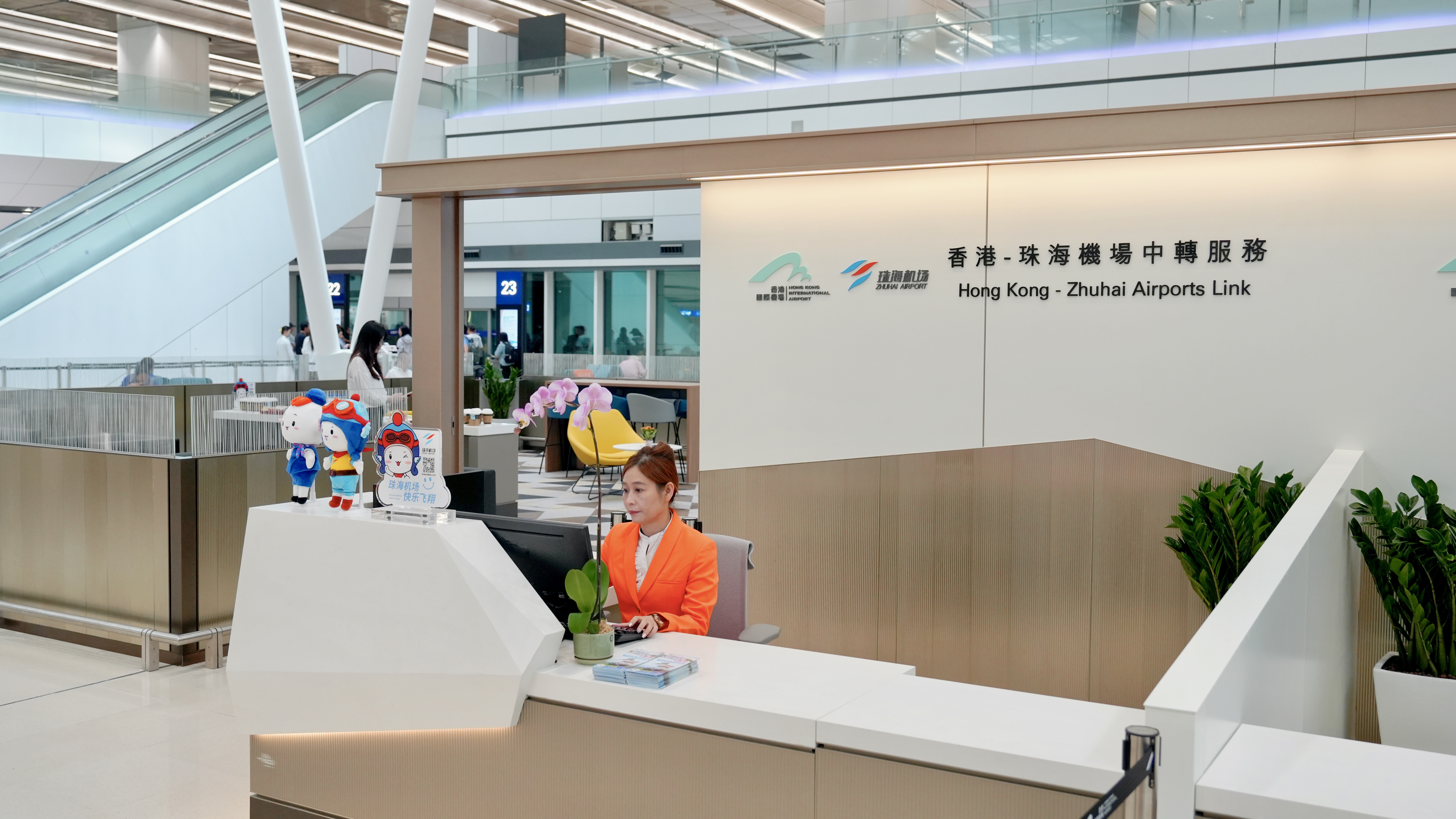 香港-珠海機(jī)場(chǎng)中轉(zhuǎn)服務(wù)于 10月9日起正式運(yùn)營(yíng),中轉(zhuǎn)柜臺(tái)及休息區(qū)位于香港國(guó)際機(jī)場(chǎng)T2航站樓,每日 9:00 至 23:00 提供服務(wù),為往返珠港兩地的旅客打造集休息、咨詢、跨境接駁于一體的綜合中轉(zhuǎn)服務(wù)。休息區(qū)配備舒適沙發(fā)、休閑桌椅、充電接口與WIFI服務(wù),為旅客提供靜謐的等候空間,有效緩解長(zhǎng)途出行疲勞。后續(xù),計(jì)劃逐步啟用值機(jī)功能,旅客未來可在此辦理珠海機(jī)場(chǎng)始發(fā)航班的值機(jī)手續(xù),實(shí)時(shí)查詢內(nèi)地航點(diǎn)動(dòng)態(tài)及通關(guān)政策,并通過專屬通道無縫銜接跨境班線。